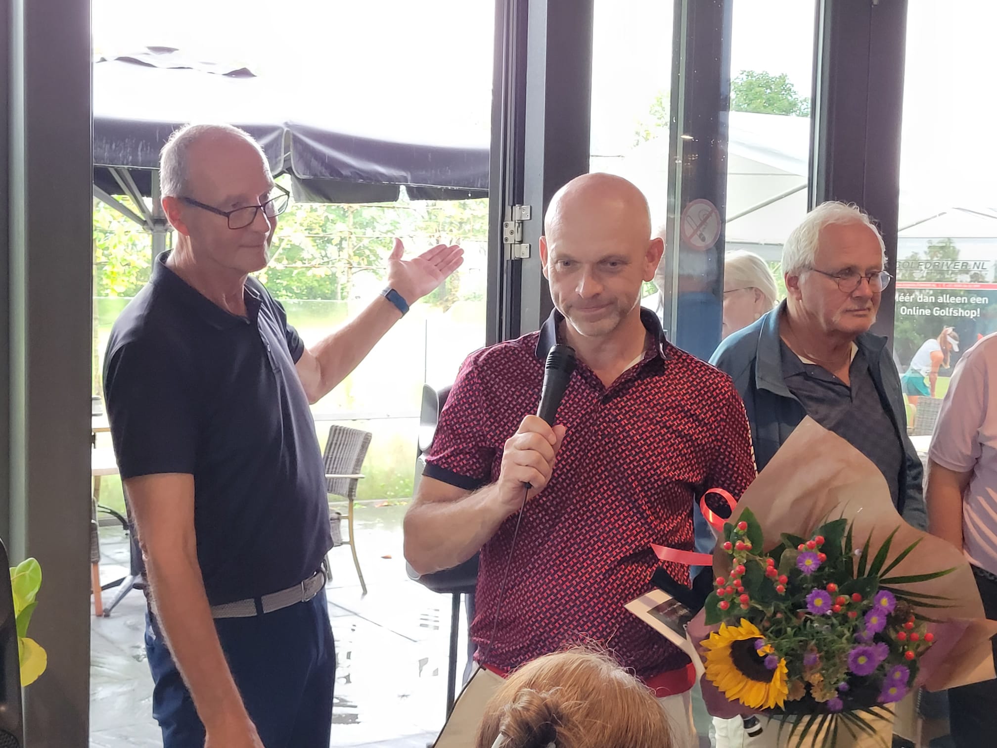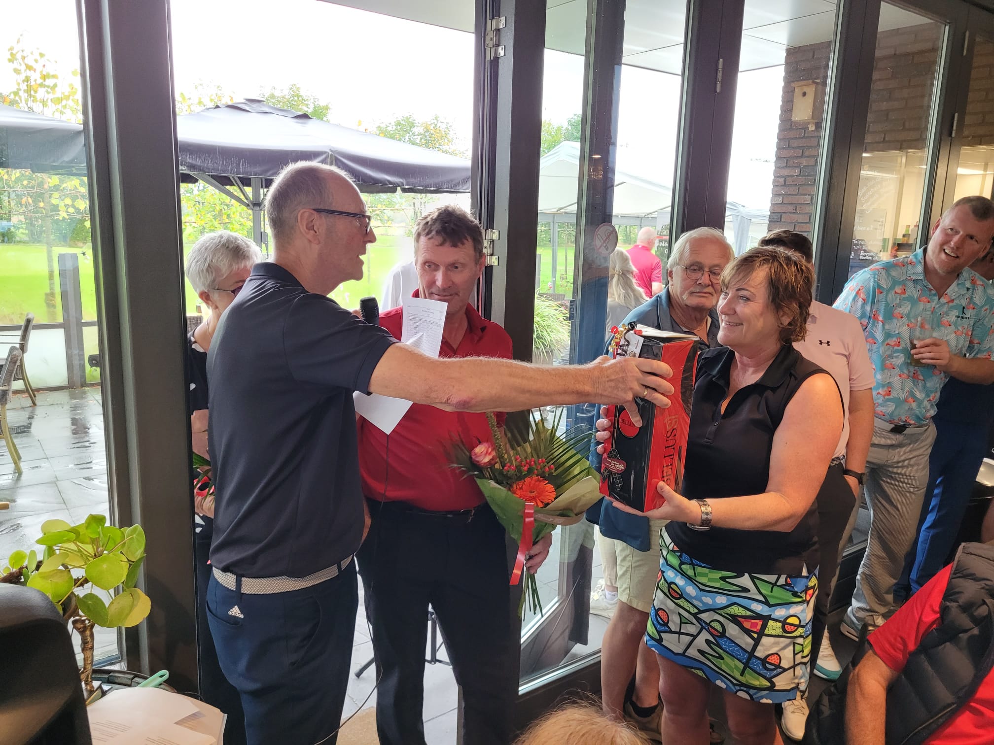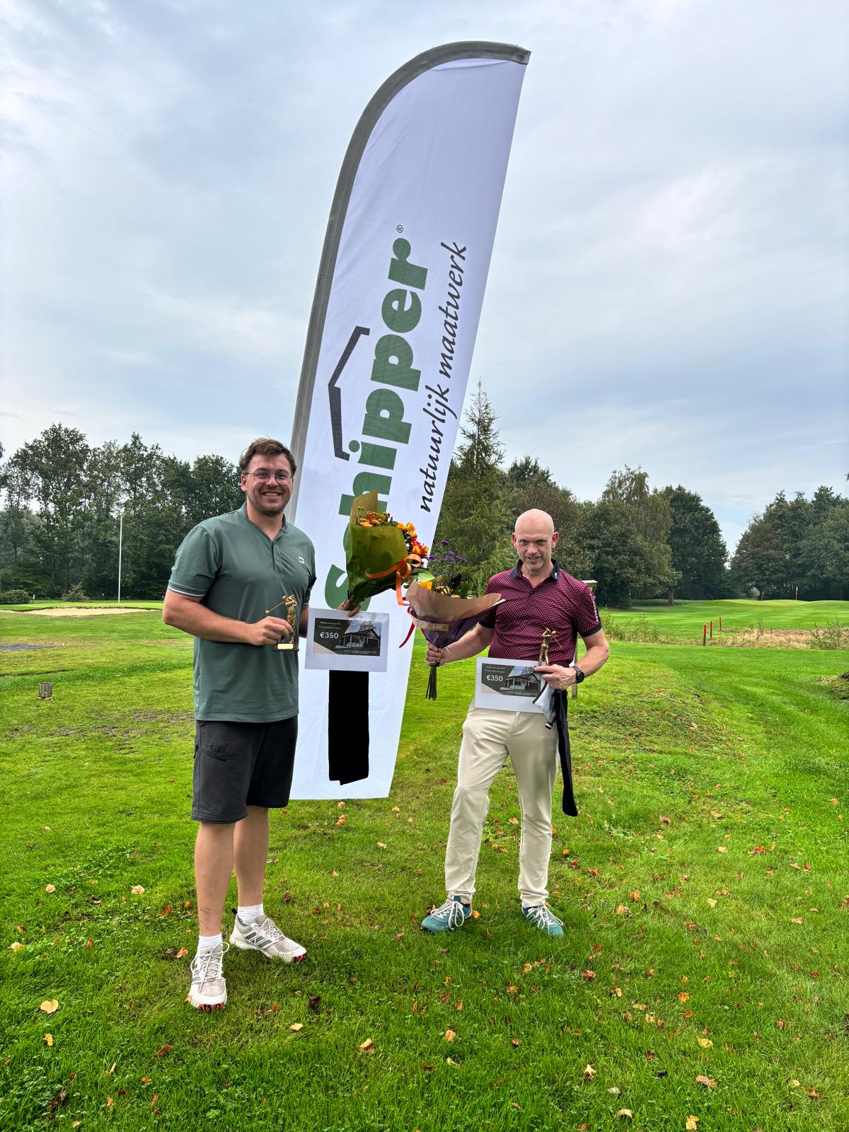 1e prijs Strokeplay – Arend Dubbelboer / Stableford – Marc Blauw. Zij ontvingen een mooie geldprijs t.b.v. € 350, beschikbaar gesteld door Schipper Houtbouw, een bronzen beeldje van Middeljans Sport & Promotie en een fraaie bos bloemen van De Bloemerie.