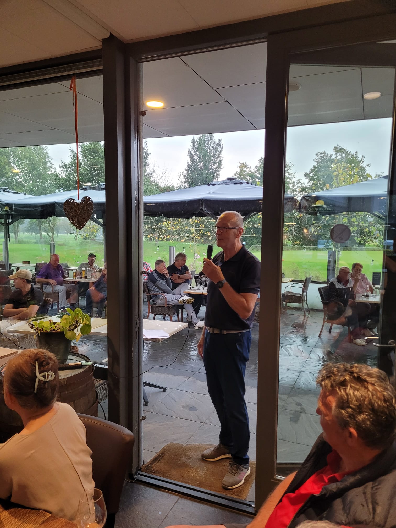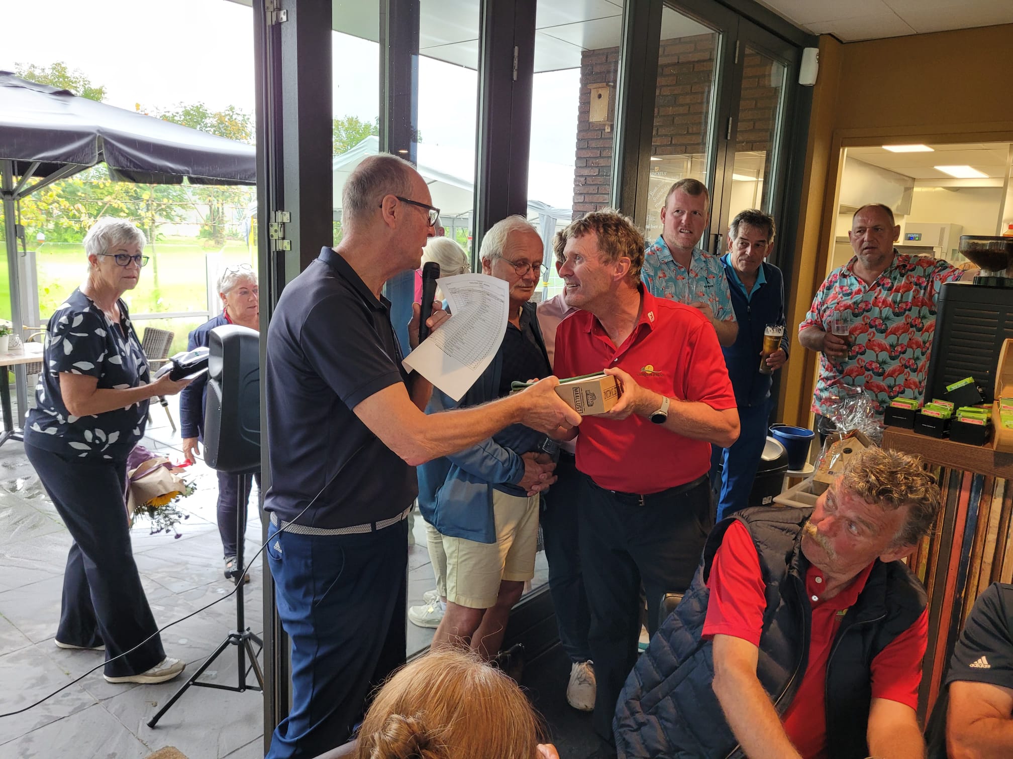 Na de wedstrijd ging iedereen, onder het genot van de prima verzorgde hapjes en drankjes, gezellig nakaarten. Slagen werden nogmaals doorgenomen, sterke verhalen verteld en de vele gemiste birdies en putjes rolden over de tafels. In afwachting van de uitslagen werden de verhalen ook steeds sterker dus werd het hoog tijd om over te gaan tot de prijsuitreiking. Gezien de hoeveelheid van prijzen die werden uitgedeeld nam dit wel de nodige tijd in beslag maar iedereen toonde zich geduldig. Als eerste ontvingen de twee jeugdleden die meededen een mooie cadeaubon van Jumbo Golf en een luid applaus als waardering voor hun deelname en sportieve inzet.