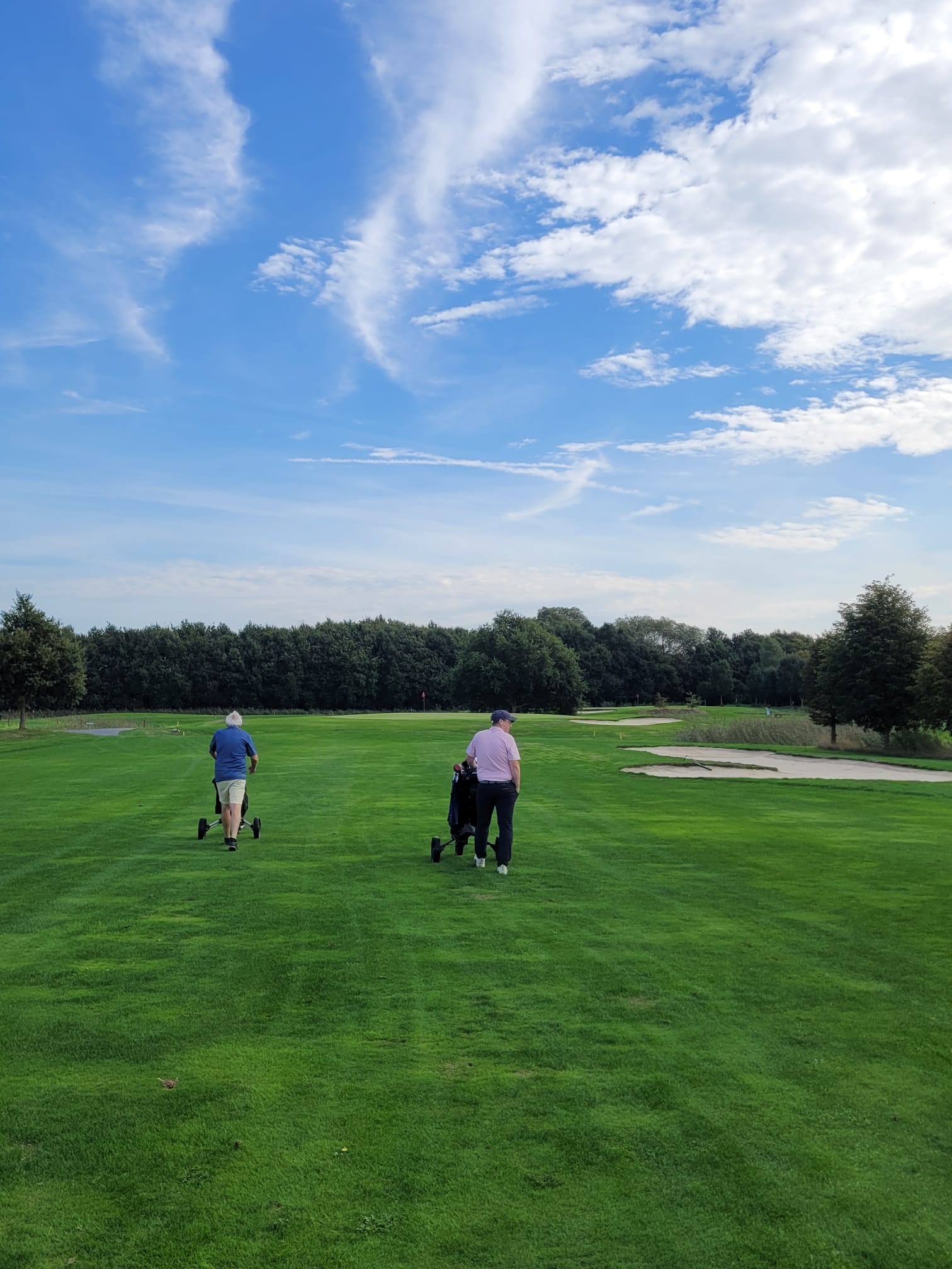 In de baan werd er al snel een mooie en sportieve strijd gestreden, met hier en daar natuurlijk wat kleine discussies, maar dat hoort er ook bij in een goede wedstrijd. Ook werden de nodige birdies geslagen, geen eagles en helaas en geen Hole in One. Daar hadden we natuurlijk wel op gehoopt want dat zou de nodige sensatie hebben opgeleverd, maar je kunt niet alles hebben. De verwachte weersomslag melde zich even voor drie uur in de middag en dat was helaas voor enkele flights iets te vroeg, maar het merendeel van de spelers kwam toch droog binnen.