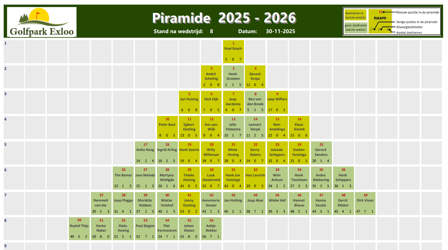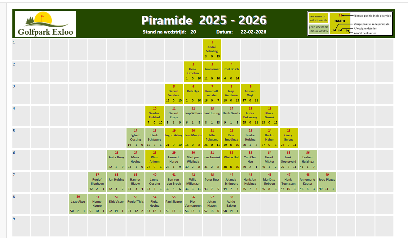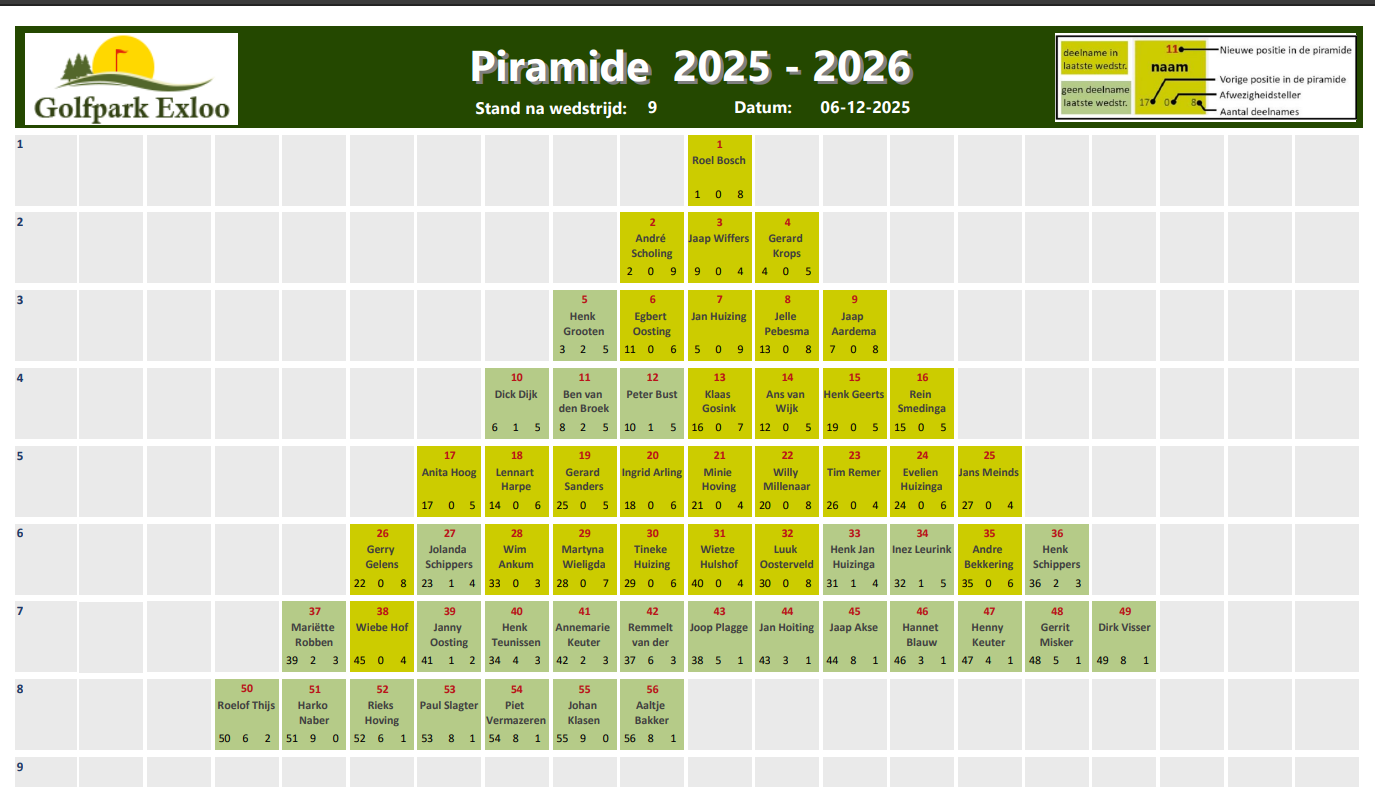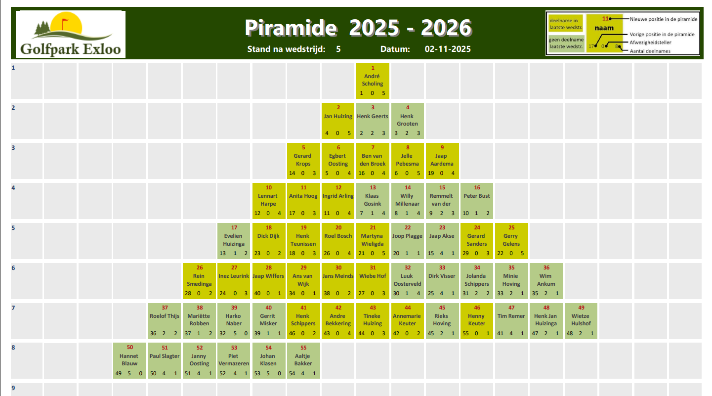 Via onderstaande afbeeldingen kun je zien hoe de piramide zich ontwikkelt.